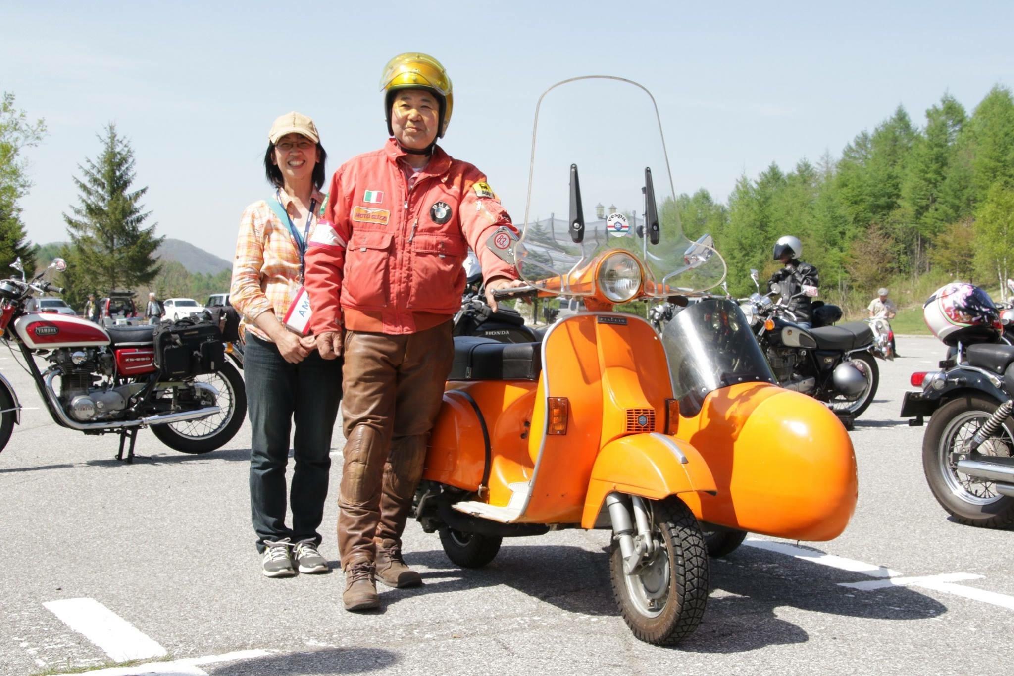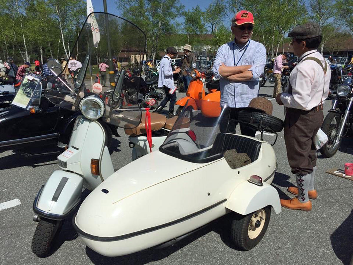 今回の言い出しっぺと、乗せられて準備不足でミーティングに参加して中々たどり着けず、結果偉い目に遭った人のベスパサイドカー。