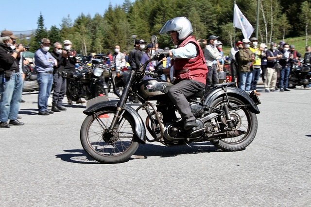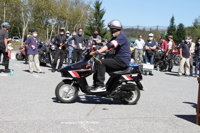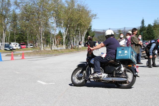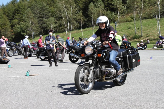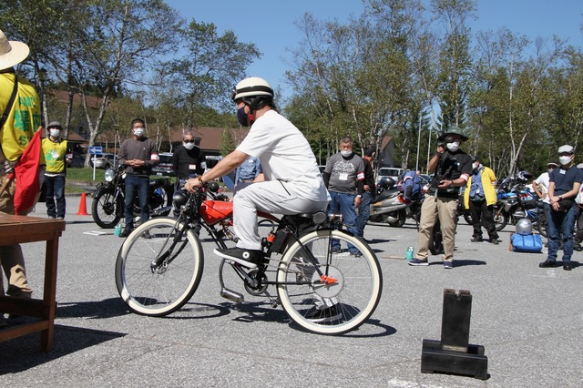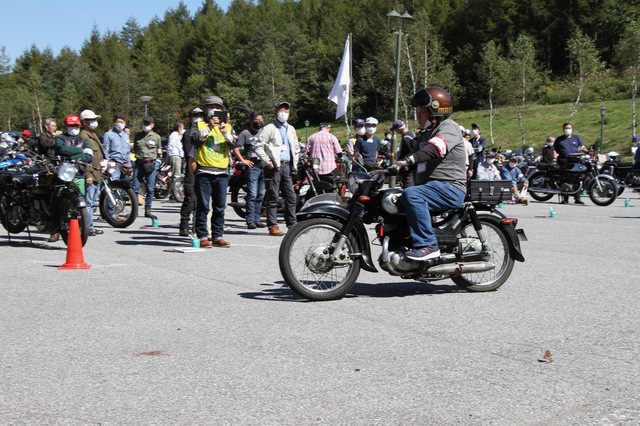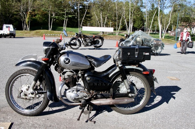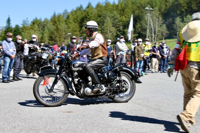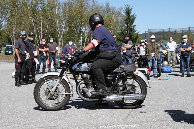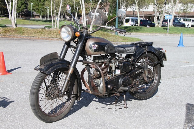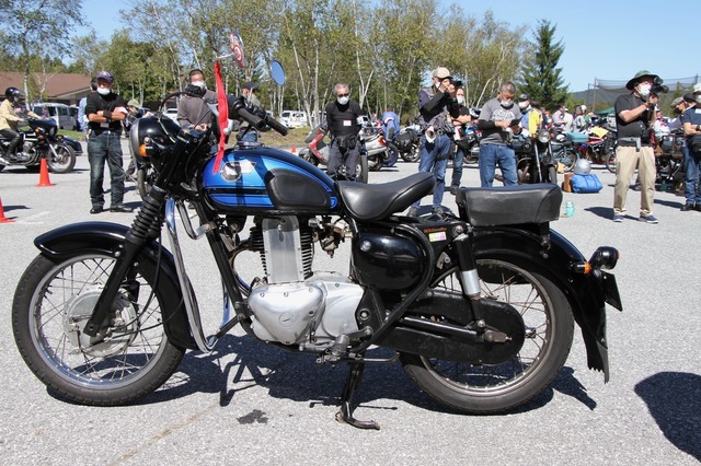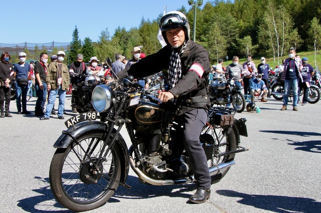 このサンビーム君は恥ずかしがり屋なのか、ウケ狙いなのか、皆の前に出ると、なかなか言うことを聞きません。オーナーさんは衆人環視の中、息を切らしながらキックすること数十回。やっと火が入った後はストトン、ストトンと、軽やかに走っておりました。